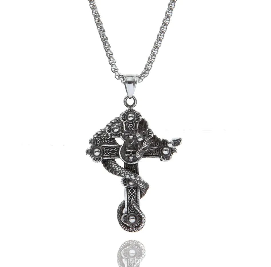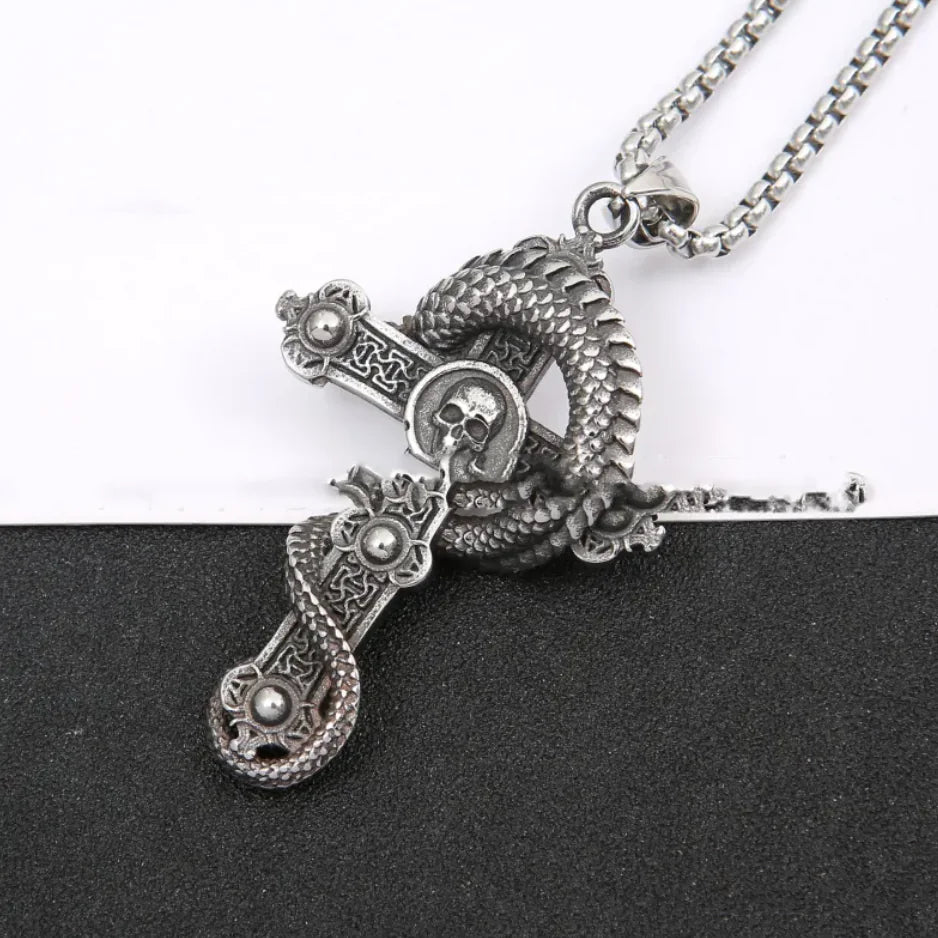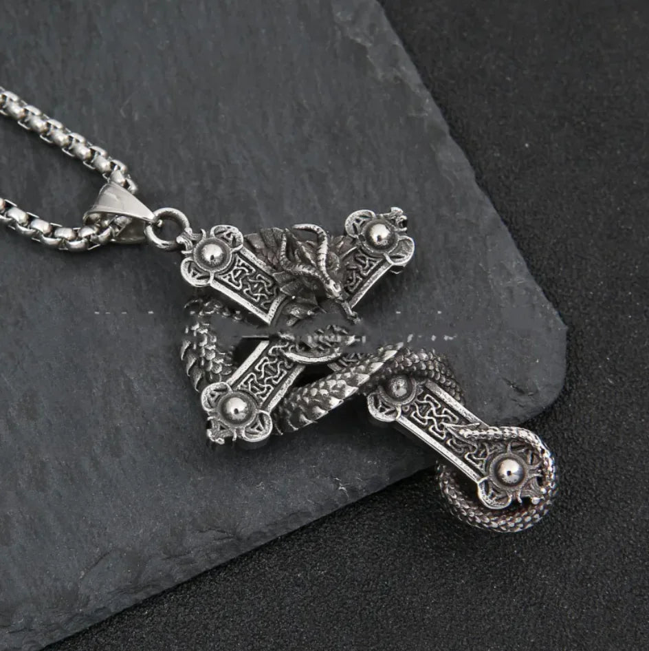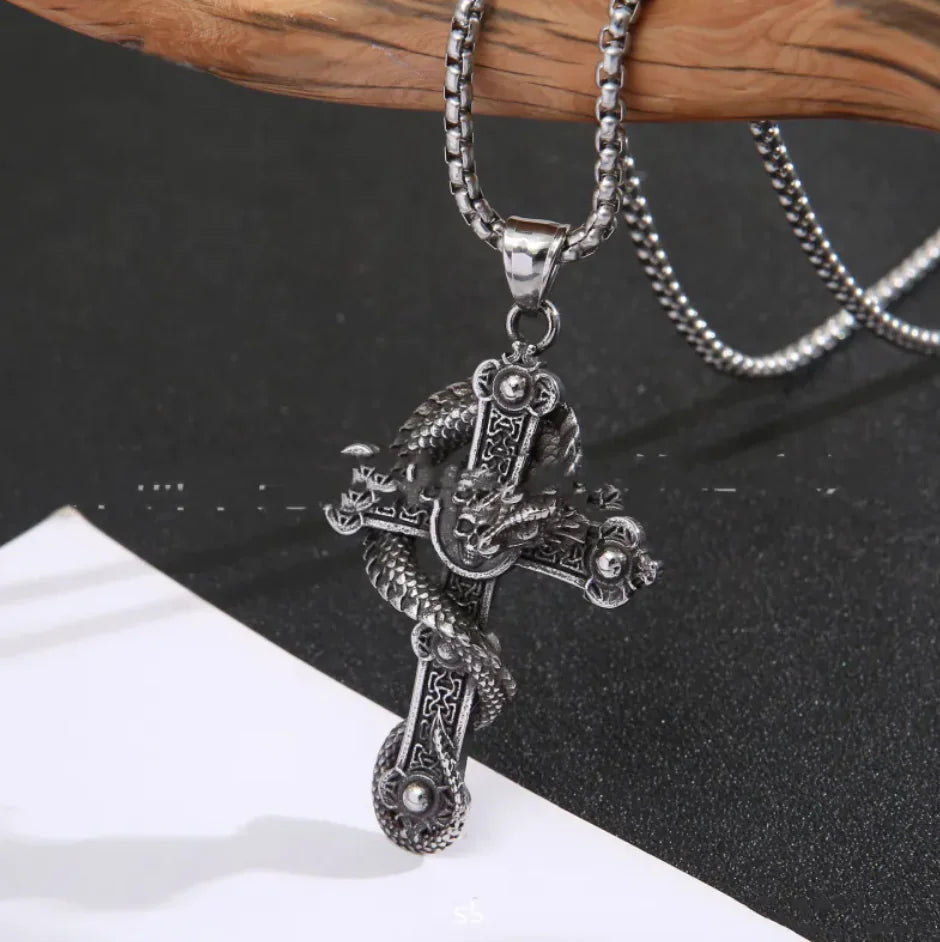 Collar con Colgante de Cruz y Dragón de Acero Inoxidable